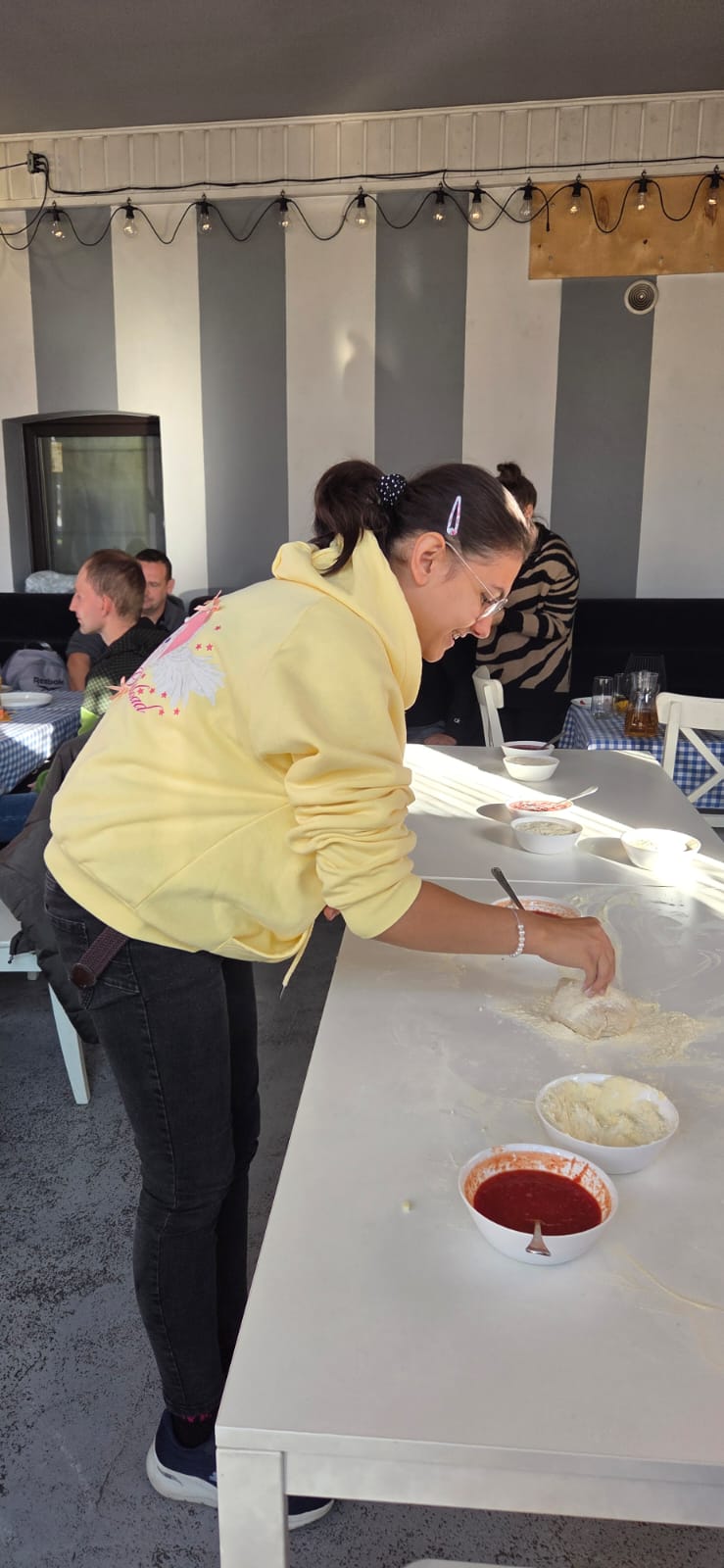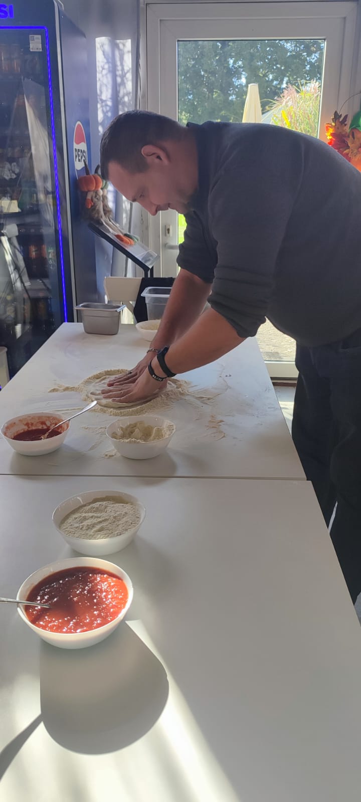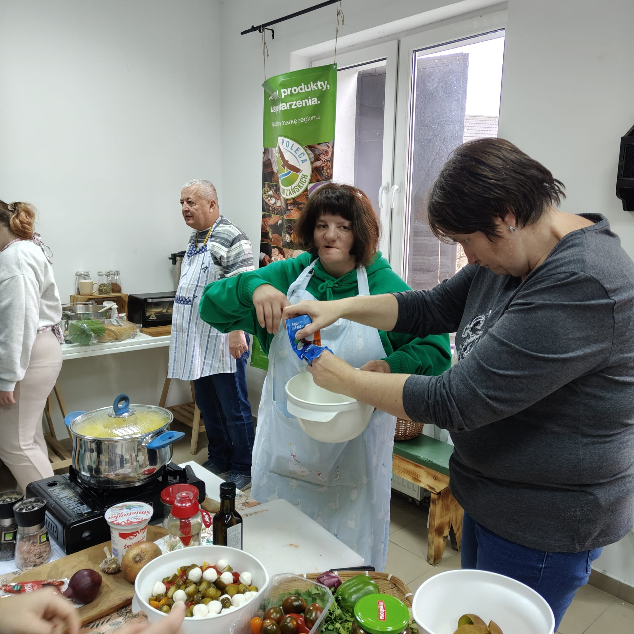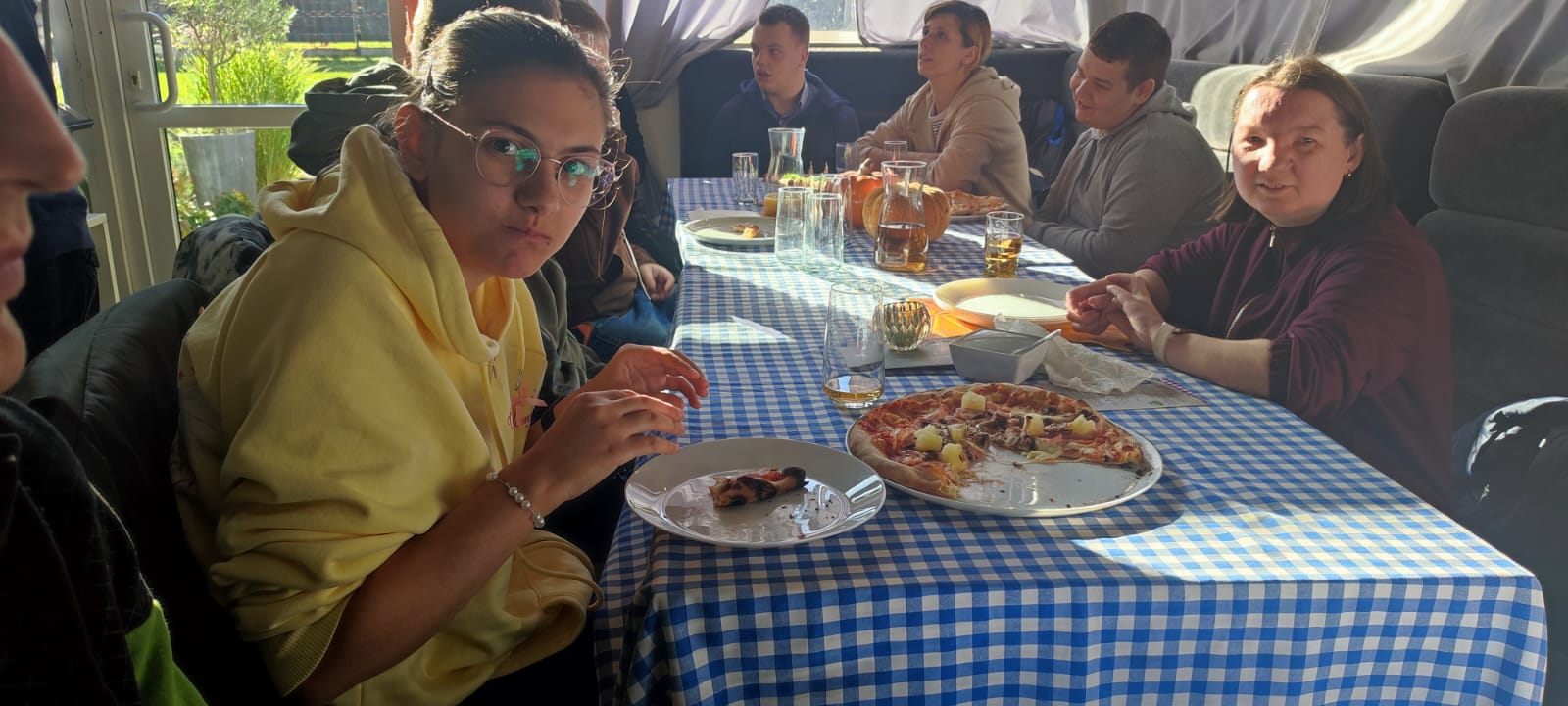 W pierwszym miesiącu (wrzesień 2025) realizacji zadania, jego bezpośredni odbiorcy udział wzięli w warsztatach z uważności w kontakcie z końmi oraz warsztatach kulinarnych. Ten pierwszy miejsce miał w Lubiążu w Fundacji Nariel, gdzie pod czujnym okiem Ewy i Jarka, nawiązywano świadome relacje ze zwierzętami. Był to również czas integracji, aktywności, obserwacji, regulacji emocji oraz budowania więzi. Udział w dwóch półtoragodzinnych warsztatach wzięło ponad 40 osób. Warsztat kulinarny odbywał się w przestrzeniach Pizzerii PaPi w Wołowie, która jest jednym z naszych projektowych partnerów. Podczas trzygodzinnych warsztatów, każdy z jego uczestników, pod okiem pizzermana, miał okazję przygotować pizzę własnego autorstwa. Dobrać składniki odpowiednie dla siebie, a podczas wypiekania przysmaków – z bliska przyjrzeć się piecowi! Przygotowując jedno z najpopularniejszych dań kuchni włoskiej, uczestnicy warsztatów poznali jej tajniki i tradycję. Gospodarzom projektu, którymi są domownicy z Powiatowego Ośrodka Wsparcia – Środowiskowy Dom Samopomocy w Wołowie, co czwartek towarzyszy – zamiennie – młodzież z Zespołu Szkół Specjalnych w Lubiążu oraz z Zespołu Szkół Specjalnych i Placówek Oświatowych w Wołowie.