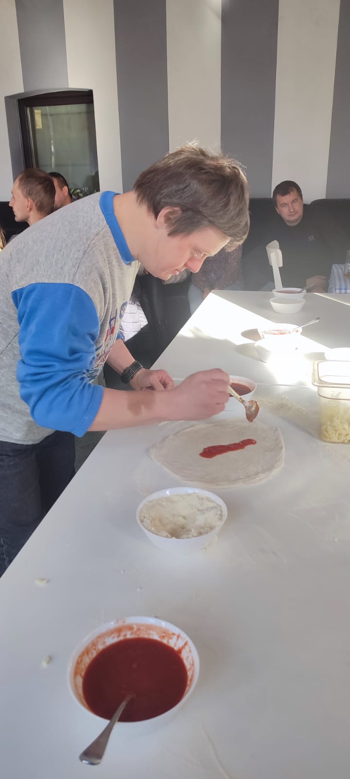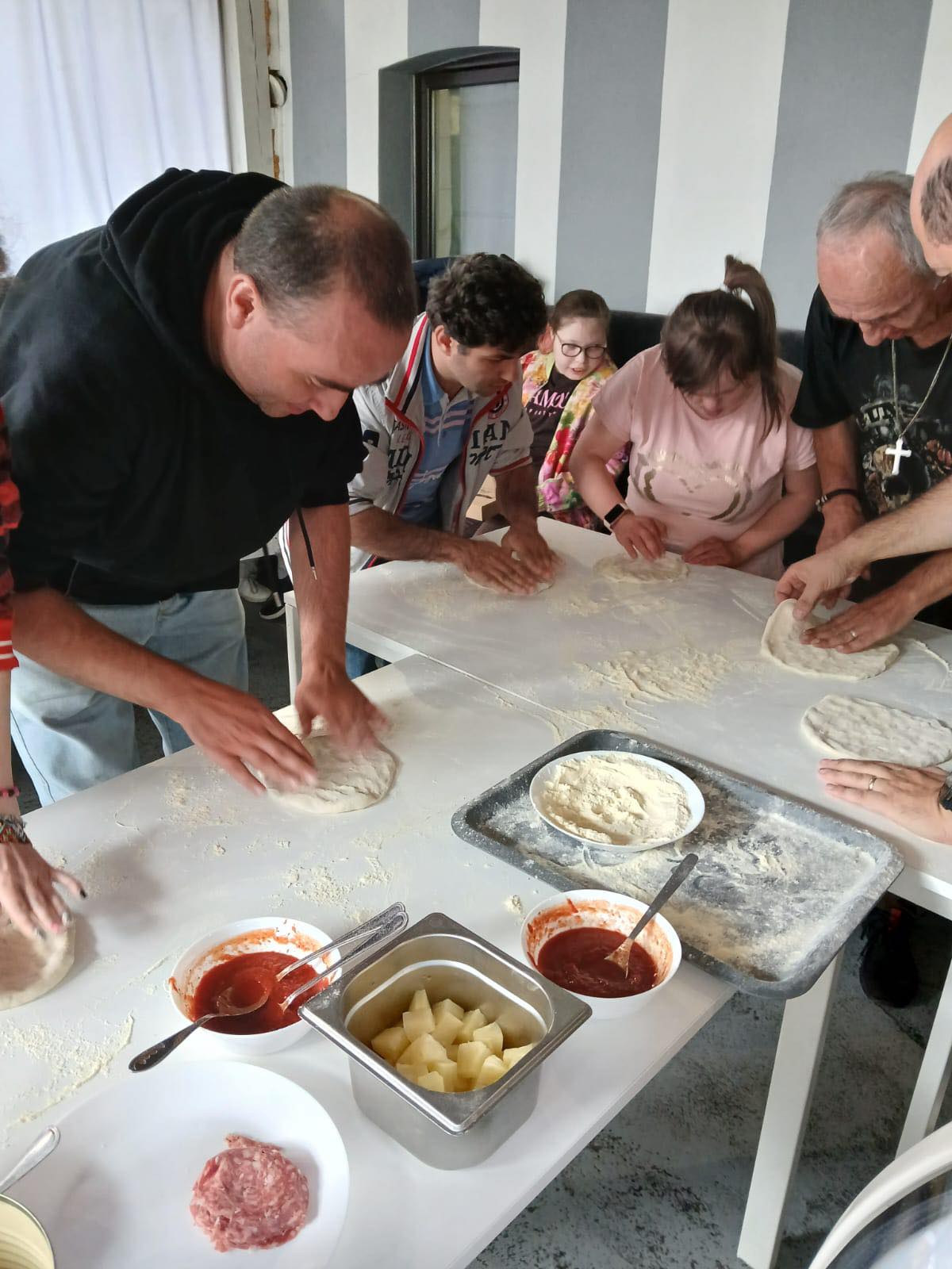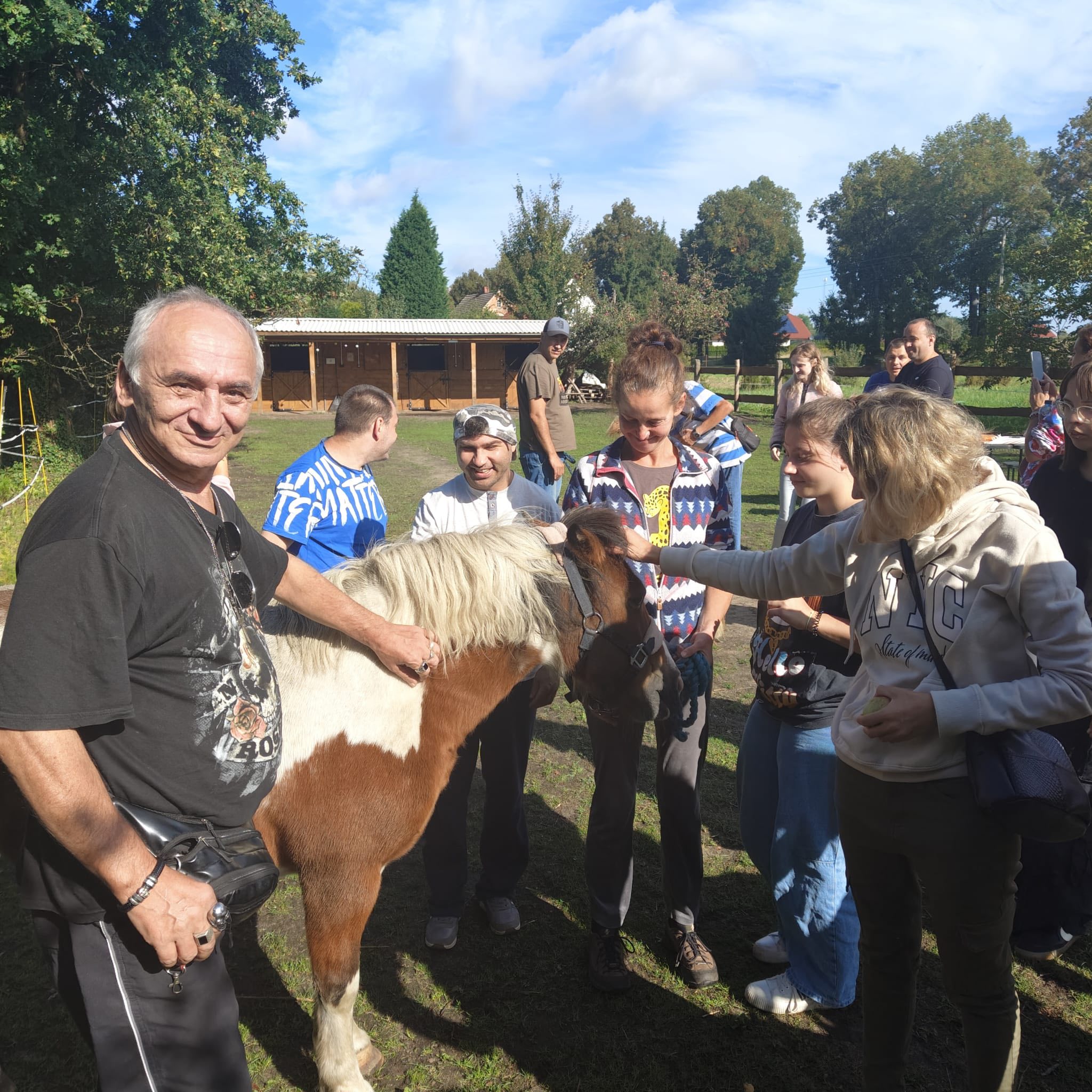 W pierwszym miesiącu (wrzesień 2025) realizacji zadania, jego bezpośredni odbiorcy udział wzięli w warsztatach z uważności w kontakcie z końmi oraz warsztatach kulinarnych. Ten pierwszy miejsce miał w Lubiążu w Fundacji Nariel, gdzie pod czujnym okiem Ewy i Jarka, nawiązywano świadome relacje ze zwierzętami. Był to również czas integracji, aktywności, obserwacji, regulacji emocji oraz budowania więzi. Udział w dwóch półtoragodzinnych warsztatach wzięło ponad 40 osób. Warsztat kulinarny odbywał się w przestrzeniach Pizzerii PaPi w Wołowie, która jest jednym z naszych projektowych partnerów. Podczas trzygodzinnych warsztatów, każdy z jego uczestników, pod okiem pizzermana, miał okazję przygotować pizzę własnego autorstwa. Dobrać składniki odpowiednie dla siebie, a podczas wypiekania przysmaków – z bliska przyjrzeć się piecowi! Przygotowując jedno z najpopularniejszych dań kuchni włoskiej, uczestnicy warsztatów poznali jej tajniki i tradycję. Gospodarzom projektu, którymi są domownicy z Powiatowego Ośrodka Wsparcia – Środowiskowy Dom Samopomocy w Wołowie, co czwartek towarzyszy – zamiennie – młodzież z Zespołu Szkół Specjalnych w Lubiążu oraz z Zespołu Szkół Specjalnych i Placówek Oświatowych w Wołowie.